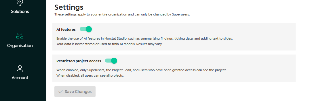 If your organisation has turned on 'Restricted project access' this may be the reason.