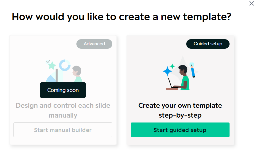 You can preview how different slide types will look as you configure the template.